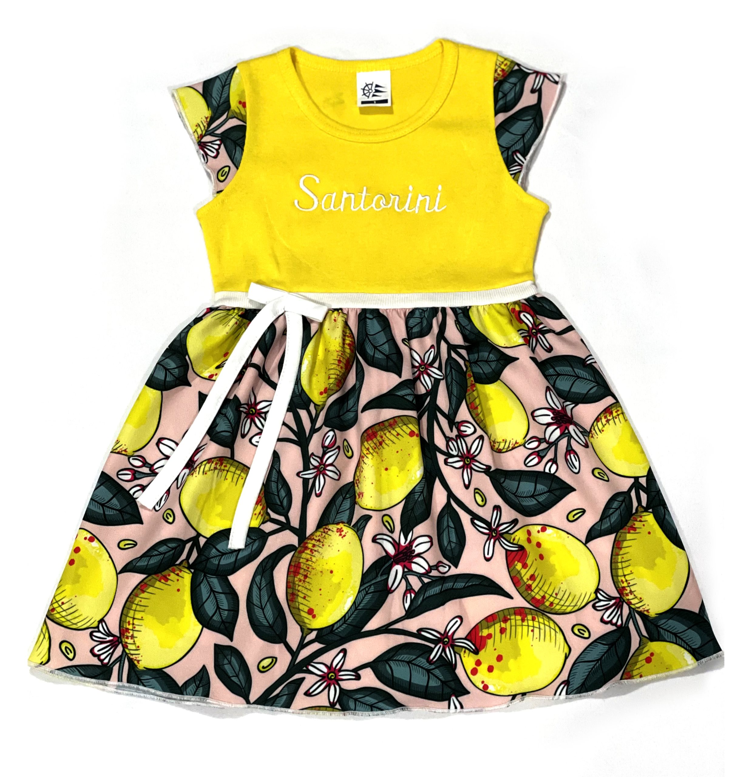 Παιδικό φουστάνι με κίτρινο βαμαβακερό ριπ τοπ, ζαπονέ μανίκια και φούστα.