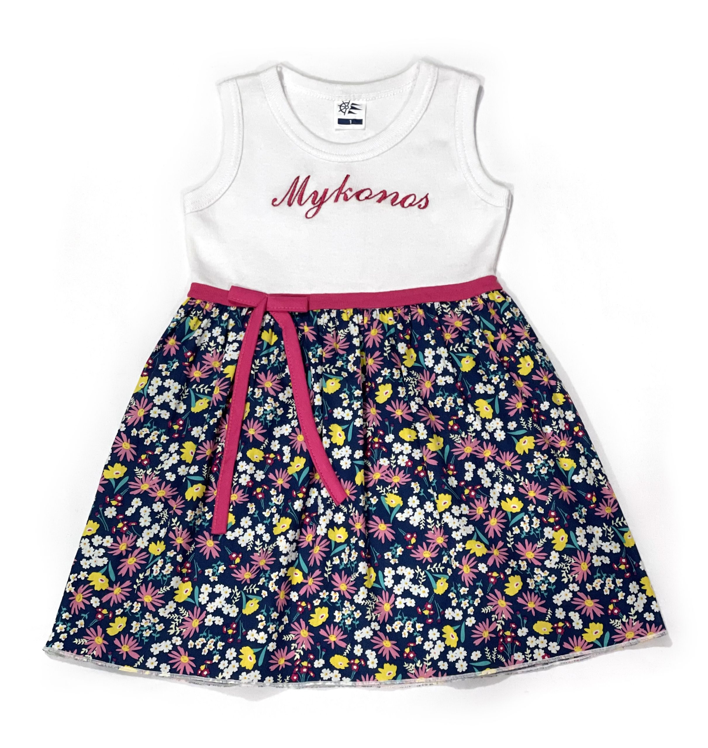 Παιδικό φουστάνι με βαμαβακερό ρίπ τοπ και εμπριμέ λουλουδάτη φούστα.